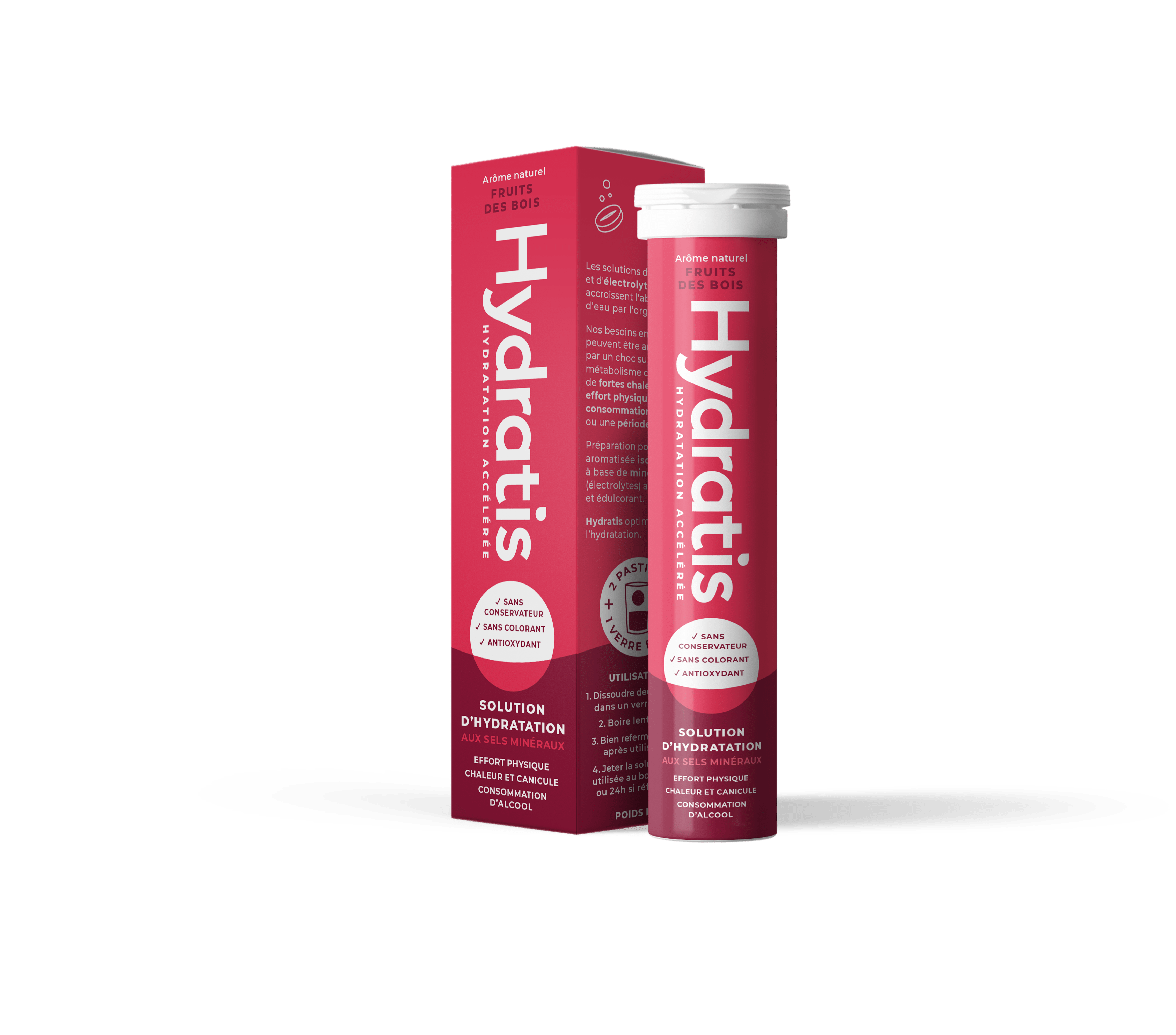 La déshydratation correspond à un manque d’eau et de sels minéraux dans le corps. La solution Hydratis, en plus d’apporter des sels minéraux et oligo-éléments, permet à l’eau d’être absorbée plus rapidement et efficacement.