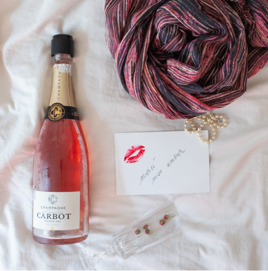Ce coffret est le fruit de la collaboration entre Virginie Lepron et une amie qui travaille dans le secteur du champagne : un duo qui allie élégance et plaisir gustatif. Il contient une bouteille de champagne rosé Lilly Rose de 75 cl, un vin charnu aux notes de fruits rouges, et une écharpe en coton imprimée de tons rouge passion : un cadeau idéal pour la Saint-Valentin ! Ce coffret est un des cinq coffrets de la collection Champagne with Style.