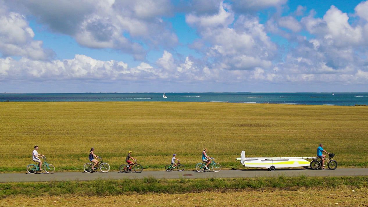 Le concept : un catamaran prêt à naviguer en 15 minutes chrono et transportable à vélo, pour savourer toutes les joies de la voile sans avoir à en subir les inconvénients.