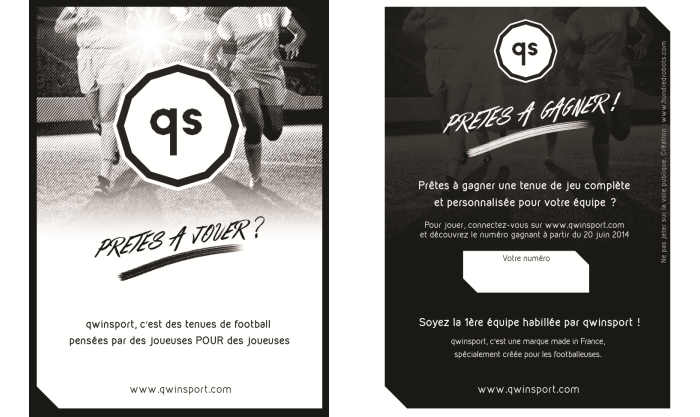 A l’occasion de la finale de la coupe de France de football féminine du 7 Juin 2014, une distribution de flyers sera réalisée sur place, au Mans (72) pour présenter l’arrivée de la marque avec un jeu concours permettant à une chanceuse de gagner un jeu de maillot pour son équipe (14 maillots et 14 shorts).