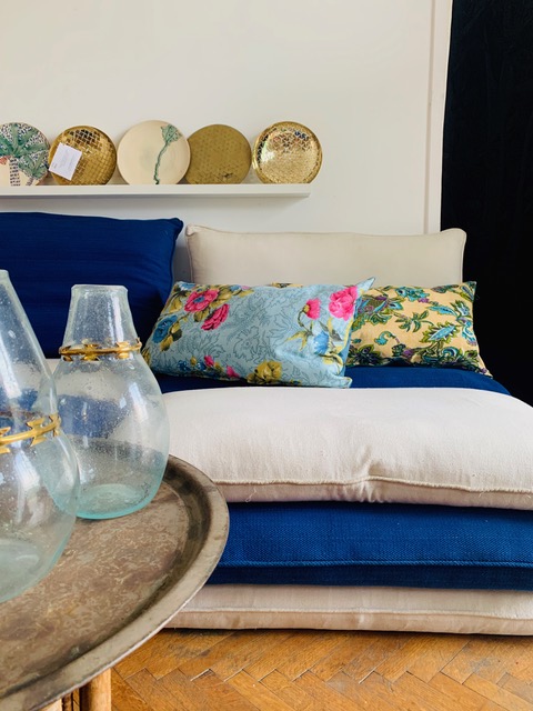 Divers motifs floraux sont disponibles. Le dos des coussins est en velours.