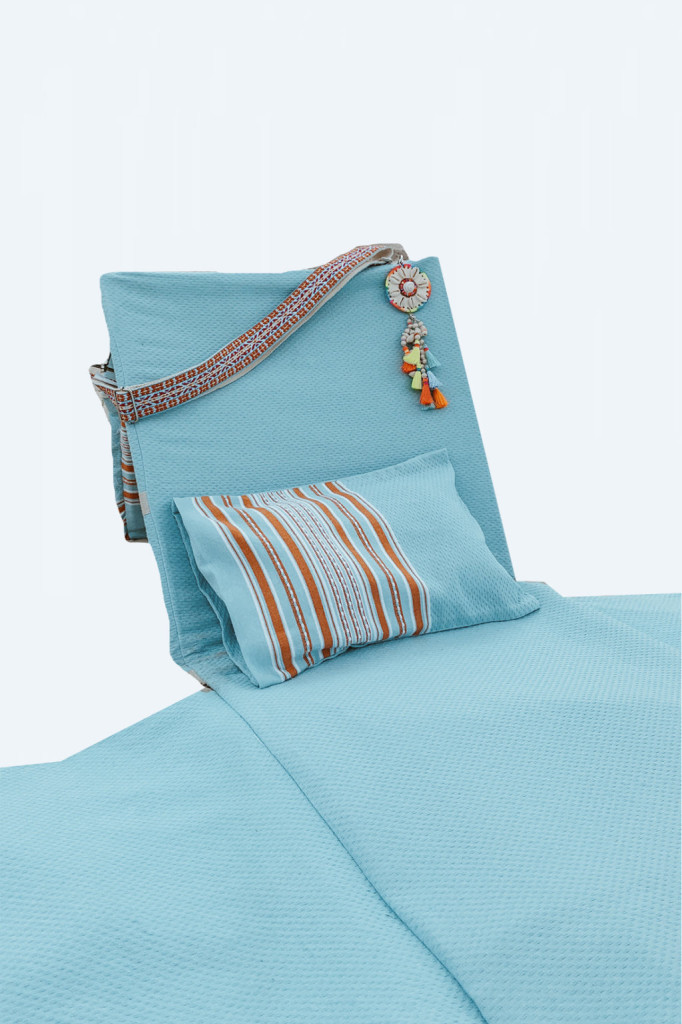 Léger, il se transporte partout. Il existe sous forme de modèle simple ou de modèle XL, composé de trois panneaux dépliables, ainsi qu’un sac de plage intégré au dossier. Une fois déplié, un fin matelas confortable et un dossier ajustable assurent un confort maximal.