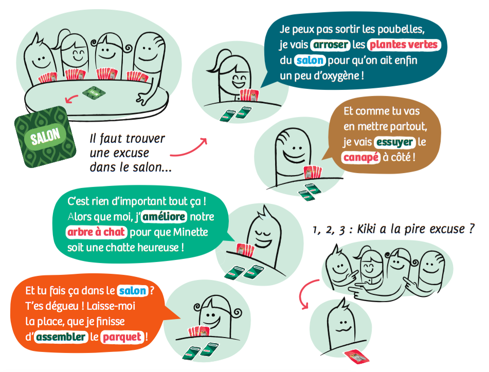 Kiki vous plonge immédiatement dans l’ambiance d’une coloc fictive où les joueurs, bien aidés par les cartes, inventent des excuses farfelues pour éviter la corvée ultime qui consiste à descendre les poubelles. Au menu : règlement de compte et mauvaise foi dans une atmosphère bon enfant, qui fait écho au sujet de la répartition des tâches domestiques, que nous connaissons tous trop bien… ou pas assez !