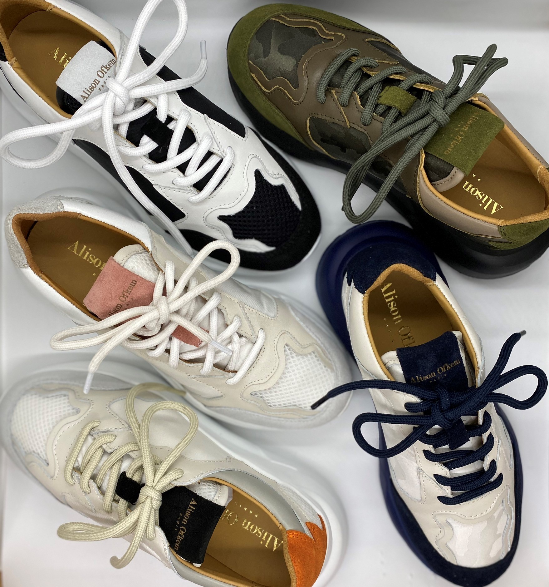 Alison Ofkem propose des sneakers haut de gamme fabriqués de façon artisanale au Portugal. La marque cultive une identité énigmatique, et imagine des sneakers qui se démarquent par leur design unique, épuré et travaillé.