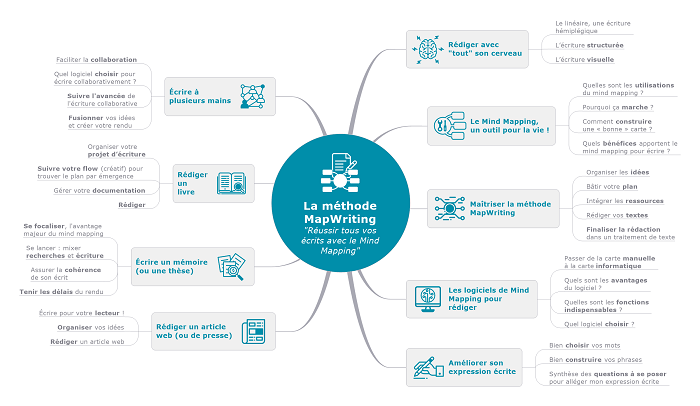 - Chapitre 3 - Maîtriser la méthode MapWriting : Organiser les idées ; Bâtir votre plan ; Intégrer les ressources ; Rédiger vos textes ; Finaliser la rédaction dans un traitement de texte