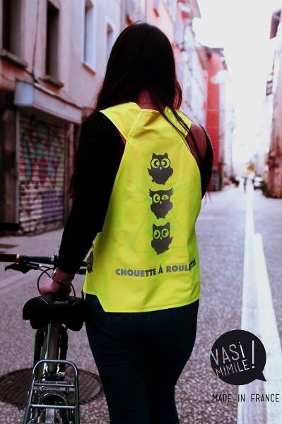 Au départ, il y a eu un énorme ras-le-bol de devoir porter un gilet jaune pour devoir être bien vue à vélo. C’est moche et jamais à la bonne taille, le scratch s’accroche à tout… C’est fait pour le coffre d’une voiture, mais pas pour porter tous les jours à vélo !