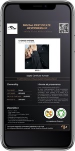 Le « Certificat Digital de Propriété » peut être considéré comme le véritable passeport de l’article, son carnet de vie digital, unique et infalsifiable. Il permet au client de tout connaître de son produit : sa composition, la provenance de ses matières, son histoire.