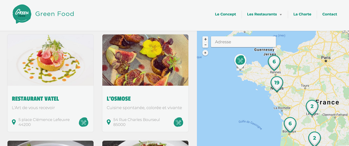 Grâce au site internet du label Green Food il est désormais possible de retrouver les restaurants proposant une cuisine durable. Ils sont référencés par ville et les critères éco-responsables validés par les restaurateurs sont consultables. On peut y retrouver plusieurs types d’établissements : restauration du midi, crêperie, restaurant traditionnel et même gastronomique avec notamment des grands Chefs étoilés et Meilleur Ouvrier de France.