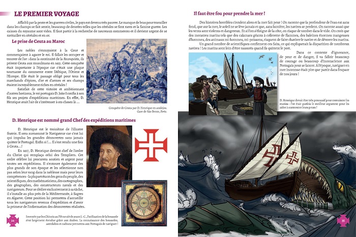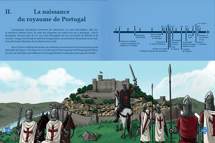 Le livre est magnifiquement illustré grâce au talentueux Joao Serrano, diplômé de l’école des Beaux-arts de Lisbonne. C’est un livre ludique très « cartoon » mais incluant aussi des cartes et des frises chronologiques pour ceux qui souhaitent approfondir.