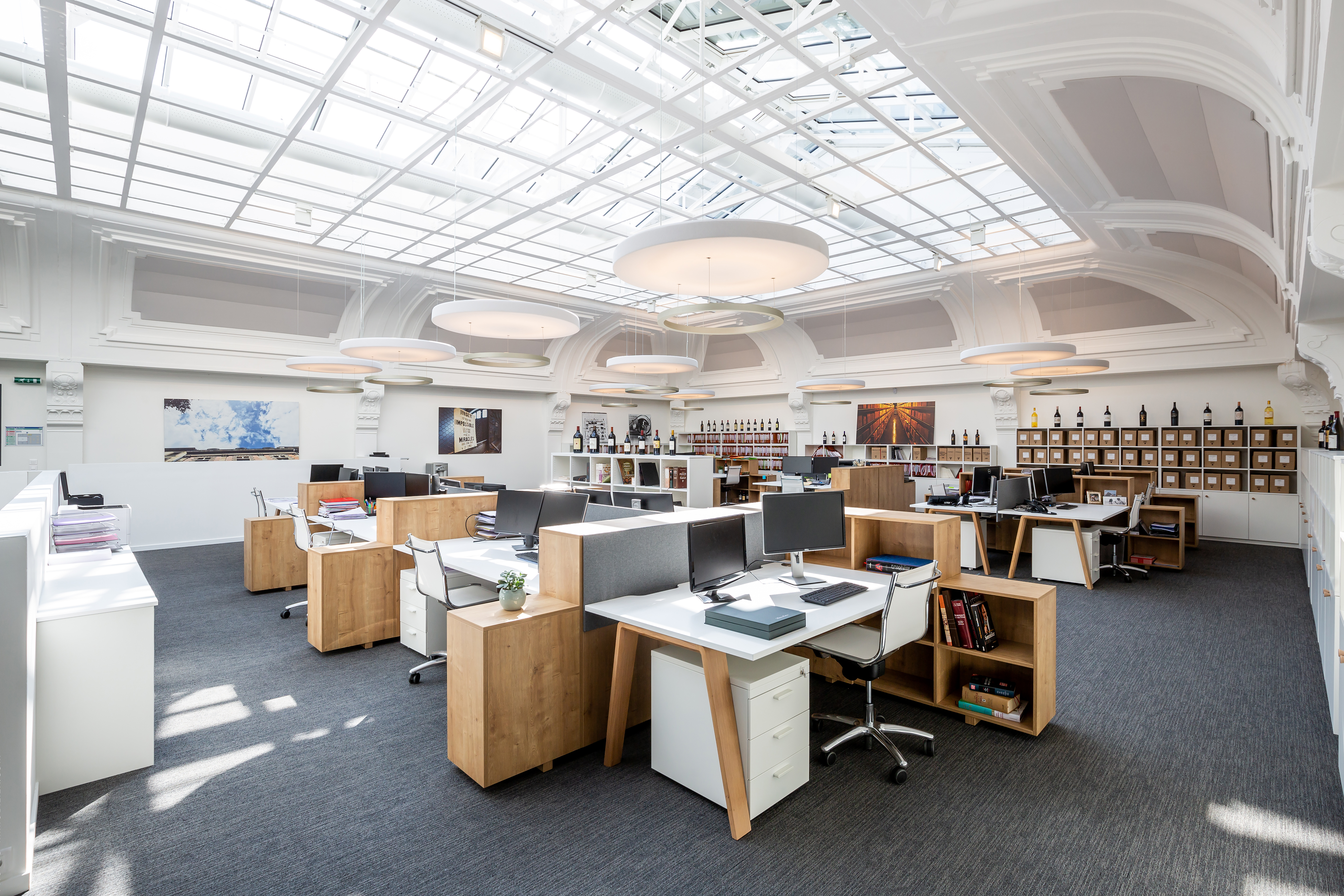 Ambiance studieuse et épurée pour les collaborateurs de Maison Descaves à Bordeaux au cœur d’un open space de 500m2