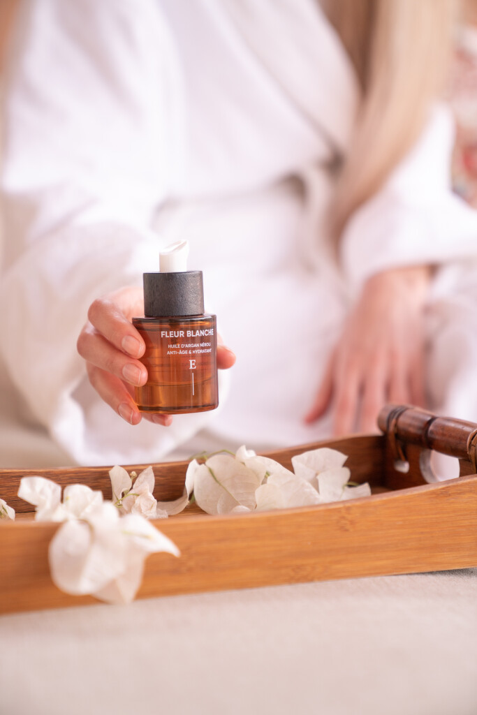 Elle est composée de l’huile d’Argan « Rose des sables» et de l’huile d’Argan « Fleur blanche ».