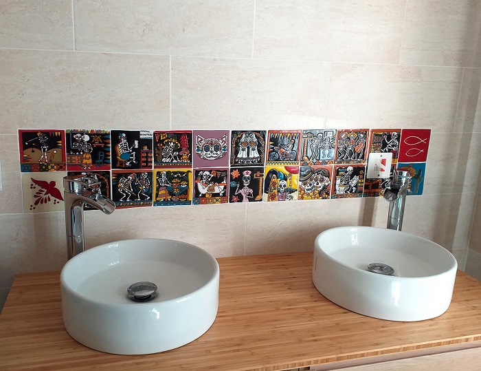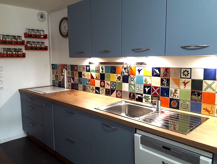 Les azulejos mexicains peuvent ainsi décorer les murs d’une salle de bain, d’une cuisine en crédence ou plan de travail. Ils sont aussi parfaits pour refaire le plateau d’une table, les contremarches d’un escalier par exemple ou la crédence d’une cuisine d’été.