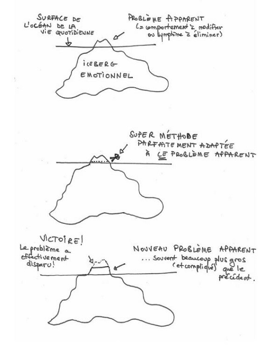 Nous aurons beau avoir appris avant des techniques respiratoires, ou toute autre méthode de gestion des stress intenses, sur le moment, elles n’existent plus. Plus rien n’existe. On est pris dans l’expérience. Car une des caractéristiques de ce circuit de gestion du stress, comme je vous l’indiquais plus haut, c’est qu’il ne passe pas par les fonctions cognitives. Tout ce que nous savons est absolument inutilisable sur le moment où l’activation se produit. Tout ce que nous avons compris de notre histoire, et de ce qui est perçu par notre système nerveux comme un danger alors que nous savons bien que cela n’en est plus un au présent, tout cela ne sert à rien. Notre système a activé l’alerte rouge, le cerveau est débranché.”