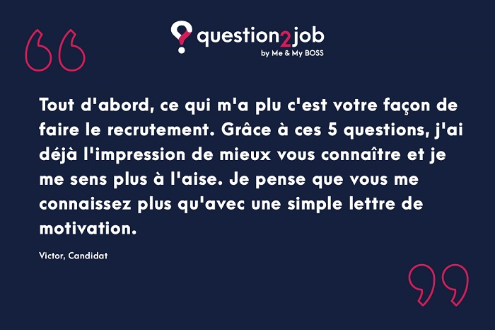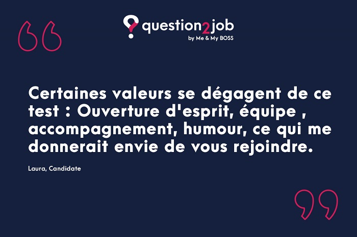 Question2job est une solution digitale de recrutement, qui permet de révéler des personnalités engagées et motivées correspondant pleinement à l’ADN de l’entreprise qui recrute.