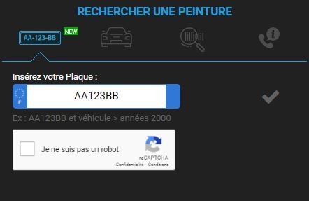 Une recherche illimitée de codes peintures par immatriculation