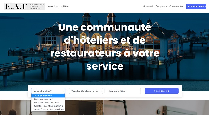 Lancé par l’association E.A.T (Entrepreneurs Artisans du Territoire), Eat-Resa.fr est un service “zéro prise de tête” qui met directement en relation les hôtels, restaurants et les leurs clients en utilisant leurs outils existants ( cahier de réservations de chambres ou de table, coffrets cadeaux, etc…).