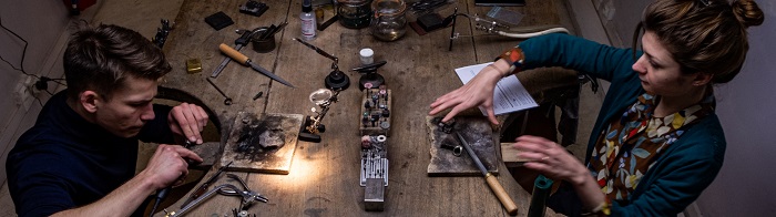 Svetlana et Richard sont tous deux diplômés en Art et Techniques de la Bijouterie-Joaillerie (ATBJ) : ils se sont rencontrés en 2012 sur les bancs de l’Ecole des Métiers SEPR de Lyon, alors qu’ils commençaient leur parcours d’apprentis joailliers.