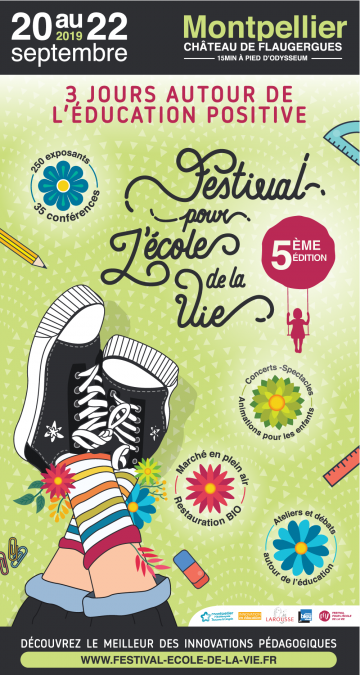 Le Festival pour l’Ecole de la Vie propose un panel des divers outils, techniques, activités qui existent autour de l’éducation pour le bien-être des enfants et semer en soi des graines d’espoirs et d’inspiration. Il rassemble tous les ans 15 000 personnes venues de la France Entière.