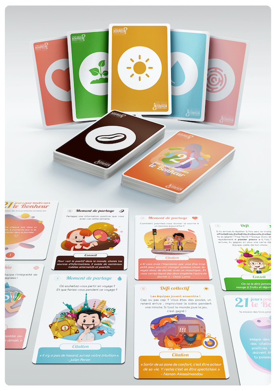 Dans le monde professionnel où à l’école, ce jeu sera est un nouvel outil pour diffuser du bonheur. Il est idéal pour créer du lien, rire, se connaitre et connaitre les autres.