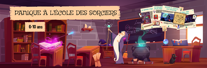 - La chasse au trésor “Panique à l’École des Sorciers” avec 13 énigmes à résoudre : 8 énigmes 6-10 ans + 5 énigmes 6/7 ans + 5 énigmes 8-10 ans ;