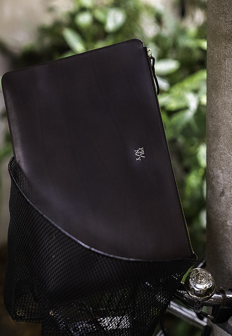 Pranay revisite le clutch, cette petite pochette de soirée traditionnellement réservée aux femmes, pour en faire un article mixte et pratique. Sobre et élégant, ce clutch en cuir gras peut être utilisé au quotidien comme lors de grandes occasions. Il peut contenir les petits objets nécessaires du quotidien : téléphone, tablette, et porte-cartes, et est doté d’une petite poche intérieure. Un mousqueton incorporé permet de ranger des clés.