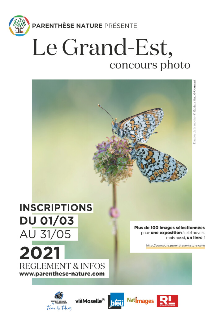 Pour la 2e édition de son festival, Parenthèse Nature organise un grand concours photographique, gratuit et ouvert à tous, du 1er mars au 31 mai 2021. Ce concours a pour but de sélectionner 150 images prises exclusivement dans la région Grand-Est. Celles-ci seront ensuite exposées et éditées dans un ouvrage.