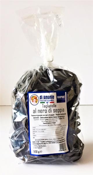 Fabriquées en Lombardie, ces Tagliatelle al nero di seppia sont d’une largeur de 0,5 cm et enroulées en forme de nid (nidi en italien). Elles doivent leur couleur noire à cet arôme naturel qu’est l’encre de seiche.