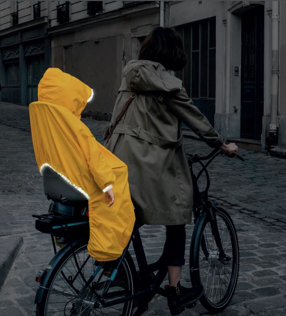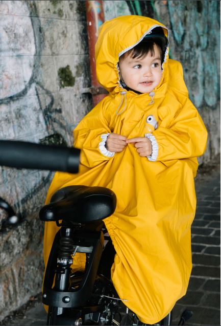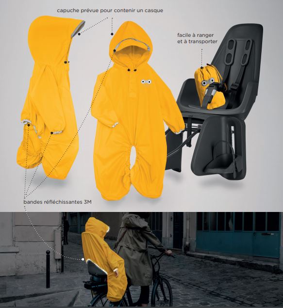 L’imperméable de rainette est le seul vêtement coupe-vent et imperméable adapté aux sièges vélos pour bébé, qui allie praticité, confort et visibilité.