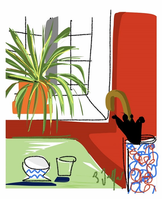 Bénédicte Jaffart est une artiste singulière, qui travaille sur une tablette. Son doigt trace les courbes, les lignes deviennent dessins puis œuvres numériques.