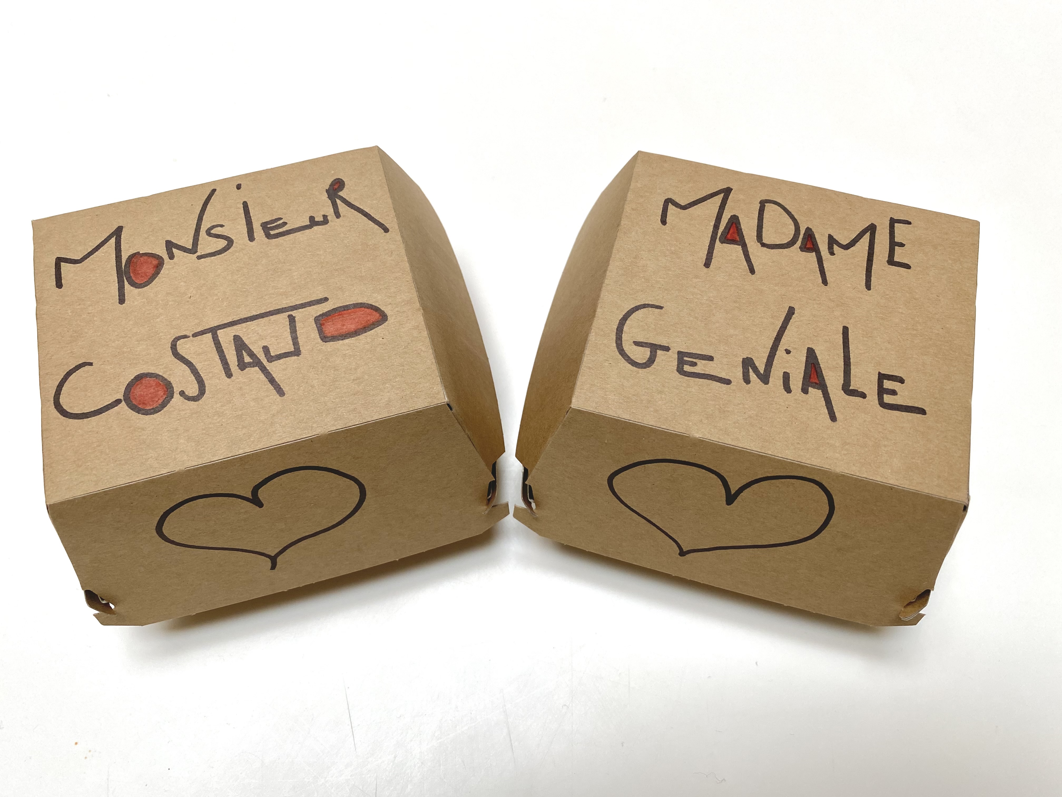 - Le goût car le packaging en boîte à cheeseburger, en boîte à pizza en carton recyclable fait son effet. Pour Pâques, il y aura un packaging avec des boîtes à œufs recyclées.