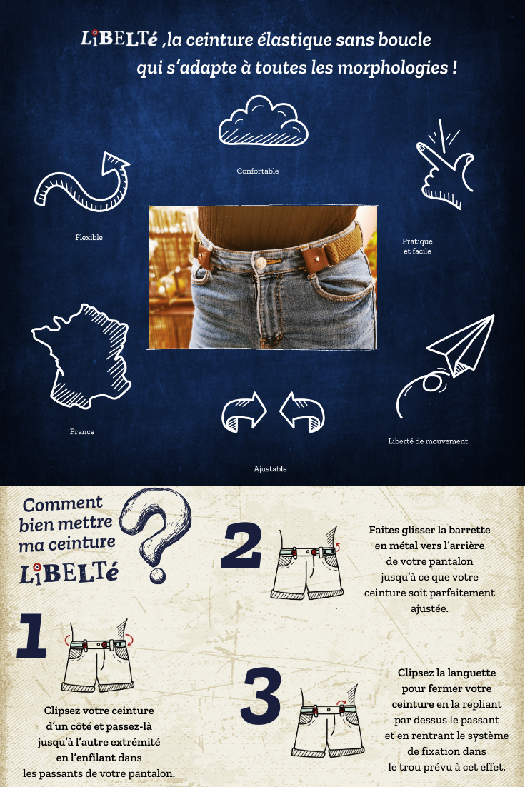 Libelté est une ceinture élastique conçue de telle sorte qu’elle n’a pas besoin d’être réajustée au cours de la journée.