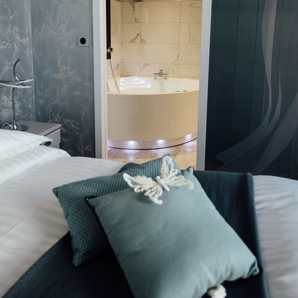 Il dispose de douze superbes chambres et suites dont sept sont équipées d’une baignoire de balnéothérapie. L’hôtel Amirauté est ainsi le seul établissement de La Baule où la balnéothérapie s’invite directement dans les chambres ; en combinant chaleur et hydromassage, les baignoires de balnéothérapie offrent de précieux moments de bien-être et de détente, et soulagent les douleurs musculaires et articulaires.