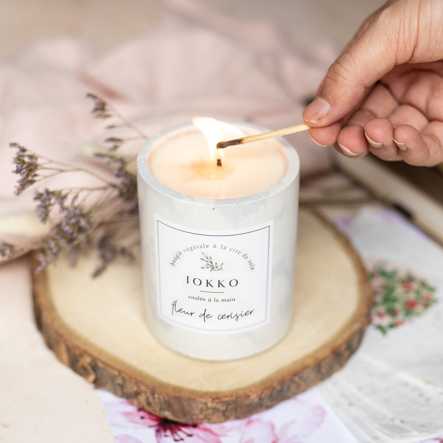 IOKKO a enrichi sa gamme de bougies de trois références, avec deux pots en béton et un pot en verre ambré. Cinq parfums sont disponibles : fleur de cerisier, fleur de coton, fleur d’oranger, jasmin et vanille-coco. Les bougies offrent une durée de combustion de 40 heures environ.