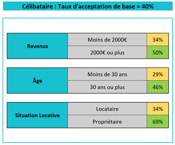 Le taux d’acceptation de 53% descend à 40% si le demandeur est célibataire