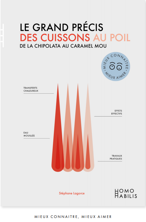 “LE livre qui explique toutes les cuissons ! Cuire, une opération quotidienne… et énigmatique. Une magie flottant aux confins de la bonne vieille cuisine, de la thermodynamique, du bon sens, de la physique et de l’instinct. Si découpe et assaisonnement sont des gestes culinaires très concrets, la cuisson, elle, est immatérielle, insaisissable. Presqu’abstraite, elle est la fille rebelle de la cuisine ! L’ouvrage démystifie toutes les cuissons, une par une, en 272 pages, des dizaines de recettes et plus d’une centaine de schémas et tableaux. Une somme indispensable destinée au grand public afin que rôtir, sauter, mijoter, colorer, cuire à la vapeur, étuver, blanchir, griller, gratiner, cuire en micro-ondes et toutes les autres cuissons, dévoilent, enfin, leurs mystères !”