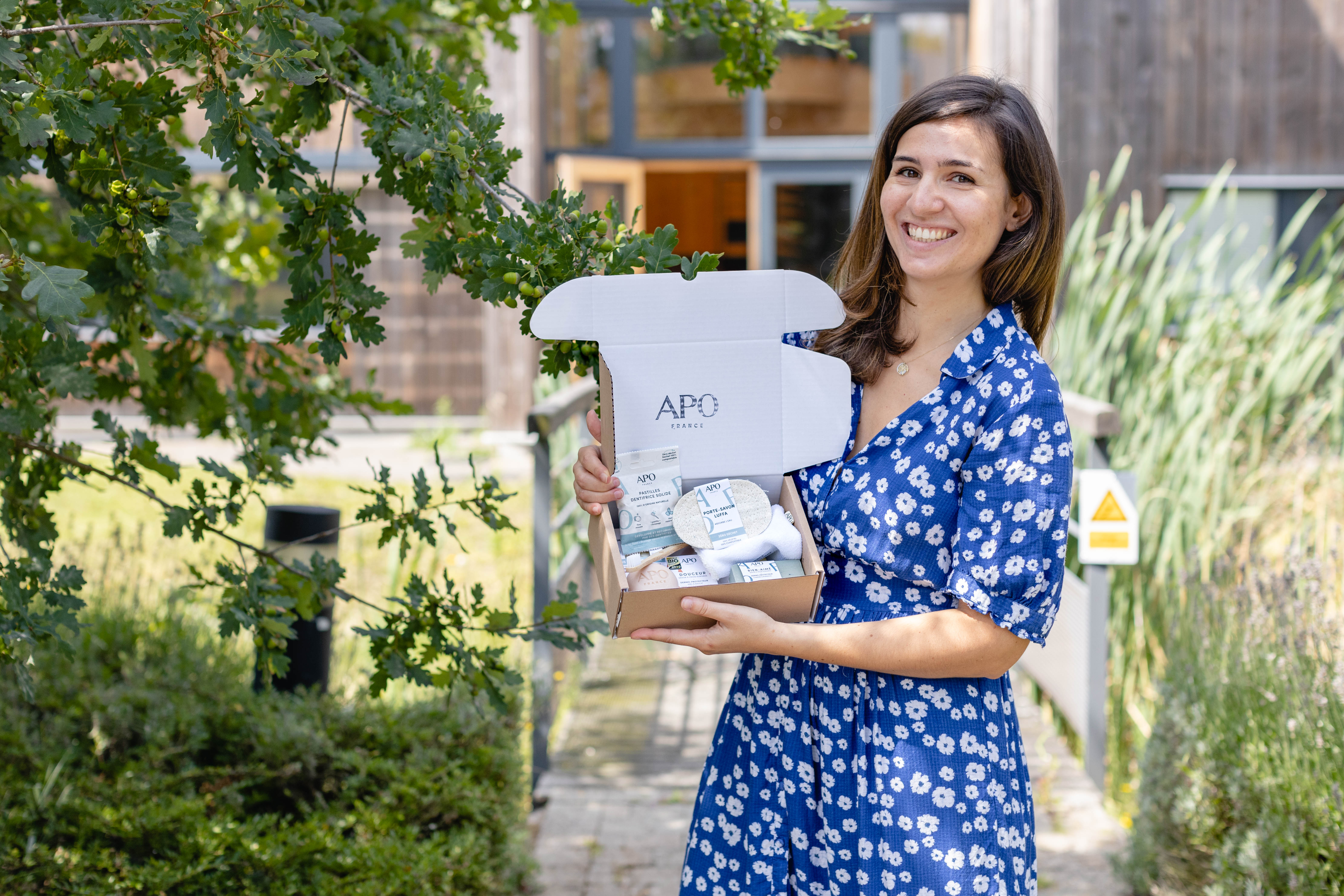Maëlys Peyrard, 29 ans, vit à Roubaix et est actuellement en transition d’un mode de vie zéro déchet. Avec Antoine Ducos, fondateur d’APO, elle est à l’origine de la création de la marque. Elle a construit l’image de marque et développé l’ensemble des produits de la gamme.