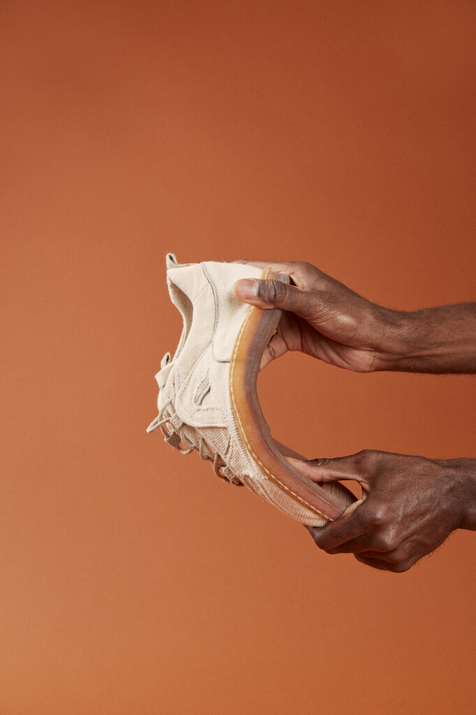 Mmea, dont « mea » signifie « plante » en swahili, est une sneaker 100 % végétale, transparente et entièrement traçable.