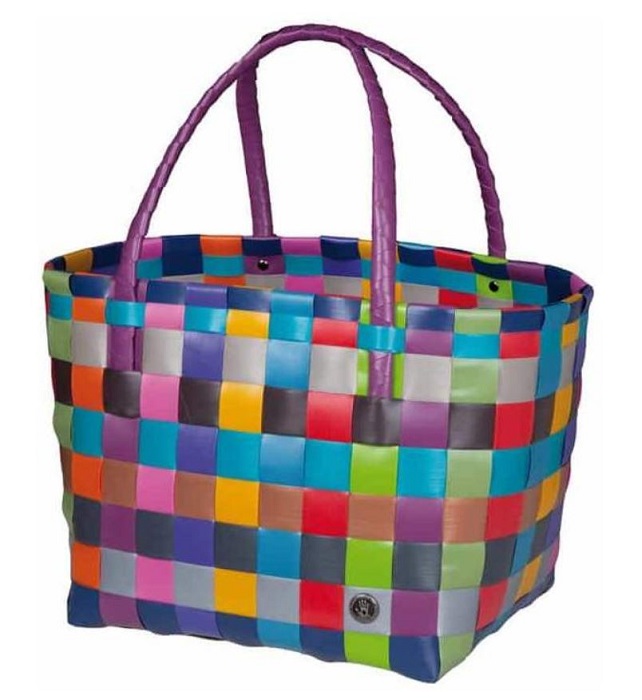 Ce joli panier coloré est tressé à la main à partir de fibres plastiques recyclées à 70%. Ce best-seller de la marque Handed By est très robuste et convient donc pour faire les courses ou pour transporter des affaires au quotidien.