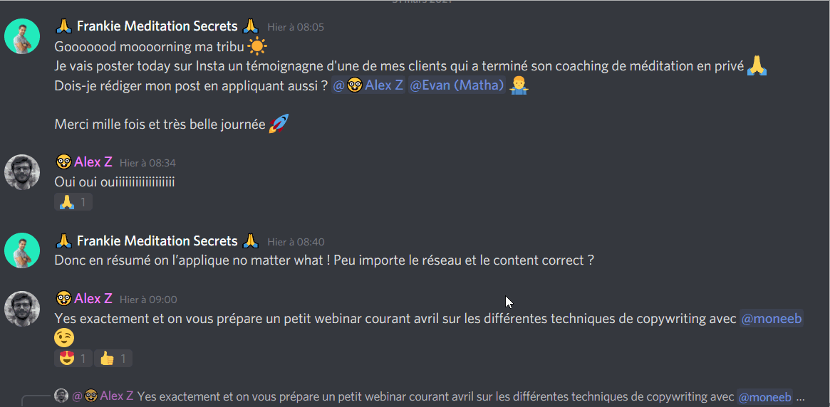 Une communauté VIP sur Discord, “la Tribu de Matha”, réservée aux entrepreneurs accompagnés par Matha. Hyper-active, elle est à la fois bienveillante, soudée et très débrouillarde !