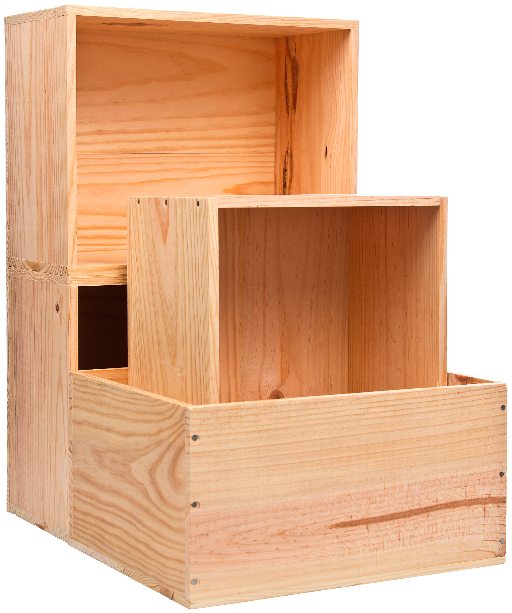 Conçues en pin massif, ces caisses à vin, naturelles et robustes, permettent une décoration originale. Elles peuvent aussi bien servir de boîte de rangement que de meuble, d’étagère ou encore de bibliothèque, une fois empilées et fixées ensemble.