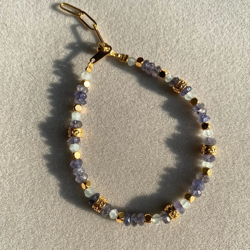 Bracelet Patka, aigue marine, iolite et plaqué or 18 carats.