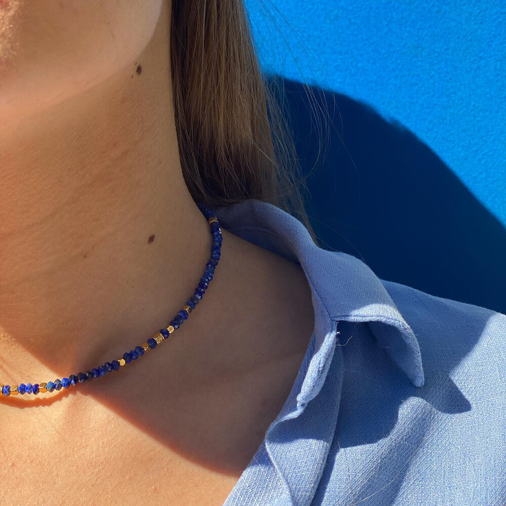 Collier Surya, lapis lazuli et plaqué or 18 carats.