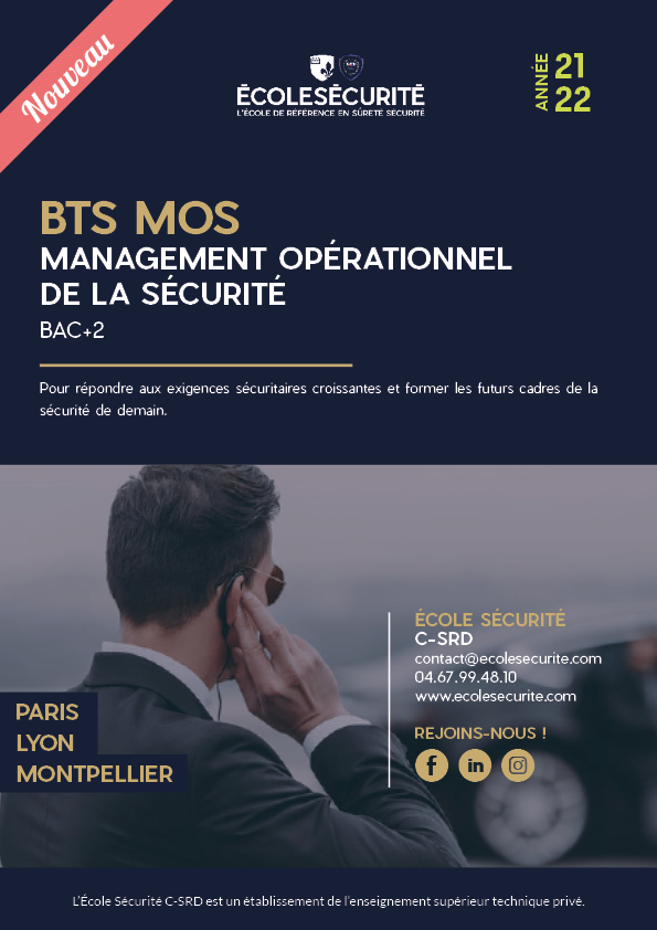 C’est donc pour répondre au besoin actuel de formation que l’École Sécurité C-SRD a créé le BTS Management Opérationnel de la Sécurité (MOS), un diplôme de niveau bac +2 destiné aux futurs cadres de la sécurité et qui accueillera ses premiers étudiants en septembre 2021.