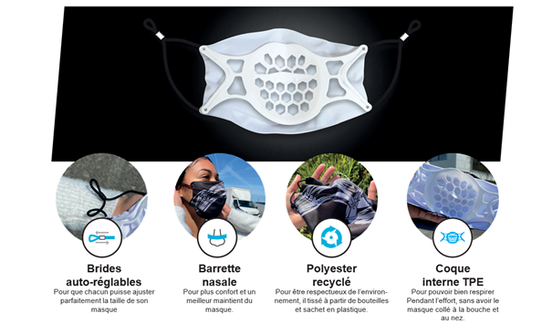 Après avoir fabriqué 300K masques pour l’usage du quotidien en 2020 pour des mairies, associations, zoos, et autres entreprises, le début d’année 2021 est difficile! Les commandes de masques se font de plus en plus rares et l’attente de la reprise du sport retarde les commandes concernant le textile….Ils décident alors de développer un nouveau type de masque, celui dédié à la pratique sportive!