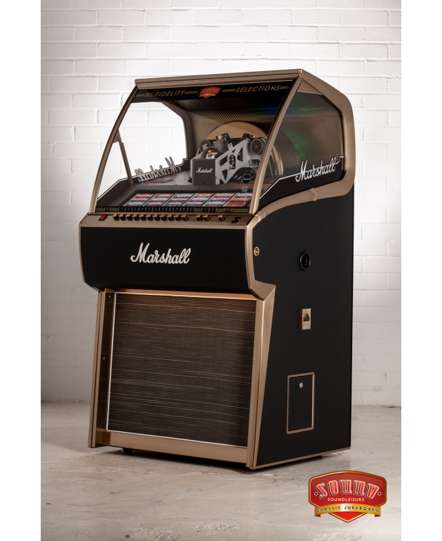 Ce jukebox a été customisé par les équipes de Marshall, un fameux fabricant d’amplificateurs, et offre un son d’une grande qualité. Il est fabriqué par Sound Leisure, un spécialiste britannique prestigieux spécialisé dans la conception de jukebox depuis plus de 40 ans.