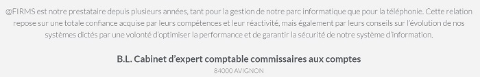 - Un soutien à 360° pour ses clients : parce que la proximité et le suivi sont des valeurs inscrites dans l’ADN d’@FIRMS, ce prestataire aide ses clients même en cas de litige opérateur.