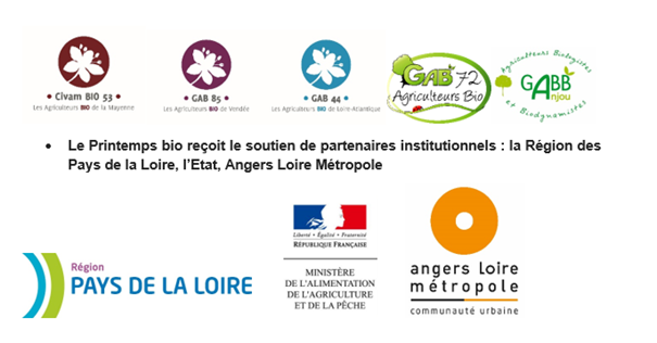 • Le Printemps bio reçoit le soutien de partenaires institutionnels : la Région des Pays de la Loire, l’Etat, Angers Loire Métropole