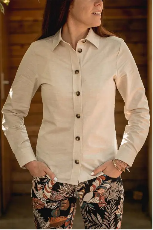 - Chemise Santa Cruz _ 115,00€. Chemise femme confectionnée avec du coton sauvage péruvien couleur « avocat » tachetée. Cette chemise a été conçue à Lima dans un atelier éthique partenaire et assemblée par Tatiana.