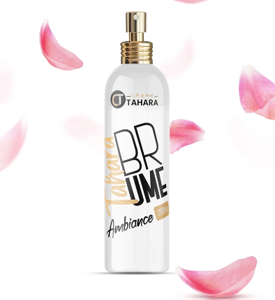 - Brume ambiance 200ml sans alcool. Cette brume d’intérieur est parfumée au musc Tahara. Elle est idéale pour toutes les pièces d’une maison, notamment la cuisine, la chambre ou les toilettes. Elle peut également être utilisée dans la voiture. Grâce à cette brume, une délicate odeur de propre envahit l’espace.