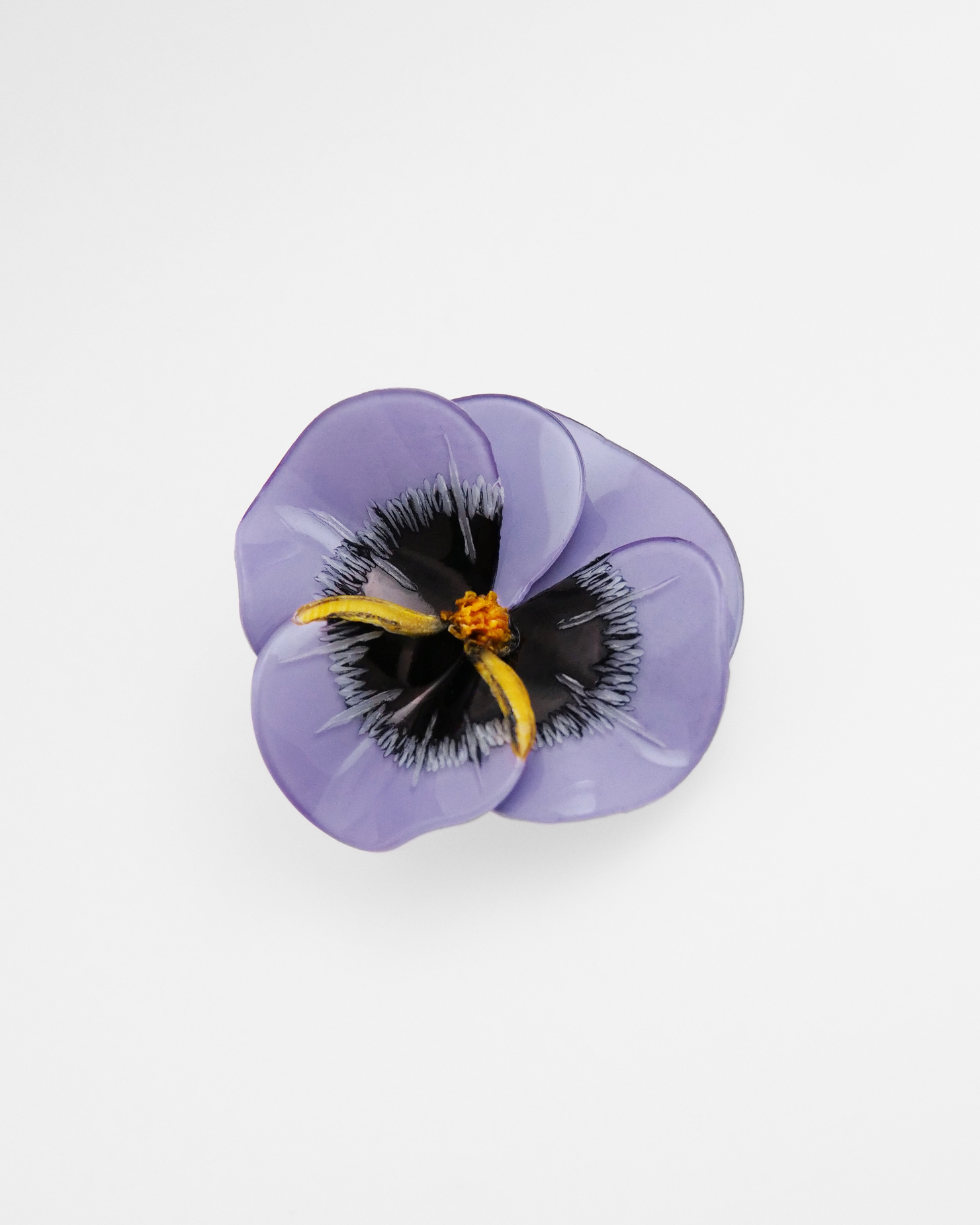 Le bijou se compose de grandes pétales ovales et ondulées aux courbes douces, modelées à la main dans une résine brillante appelée “Émaline”. Cette résine, dont la technique de fabrication est gardée secrète depuis 1992, est émaillée dans l’atelier de la Maison Ciléa.